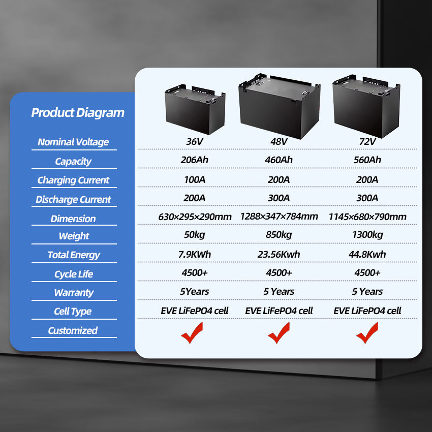 OEM ODM LiFePO4 24v 36v 48v 72v 280Ah بطارية ليثيوم أيون Lifepo4 بطارية ليثيوم قابلة لإعادة الشحن بطارية عربة جولف